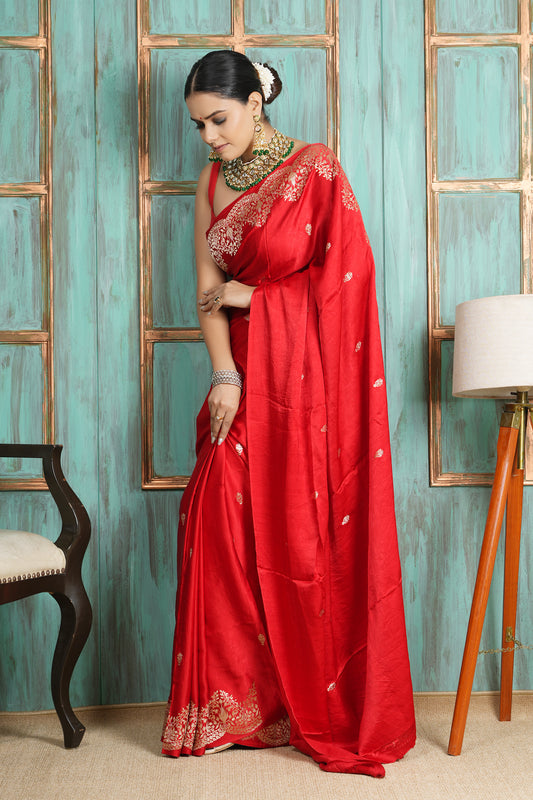 Handwoven Pure Banarasi Mashru Silk Saree