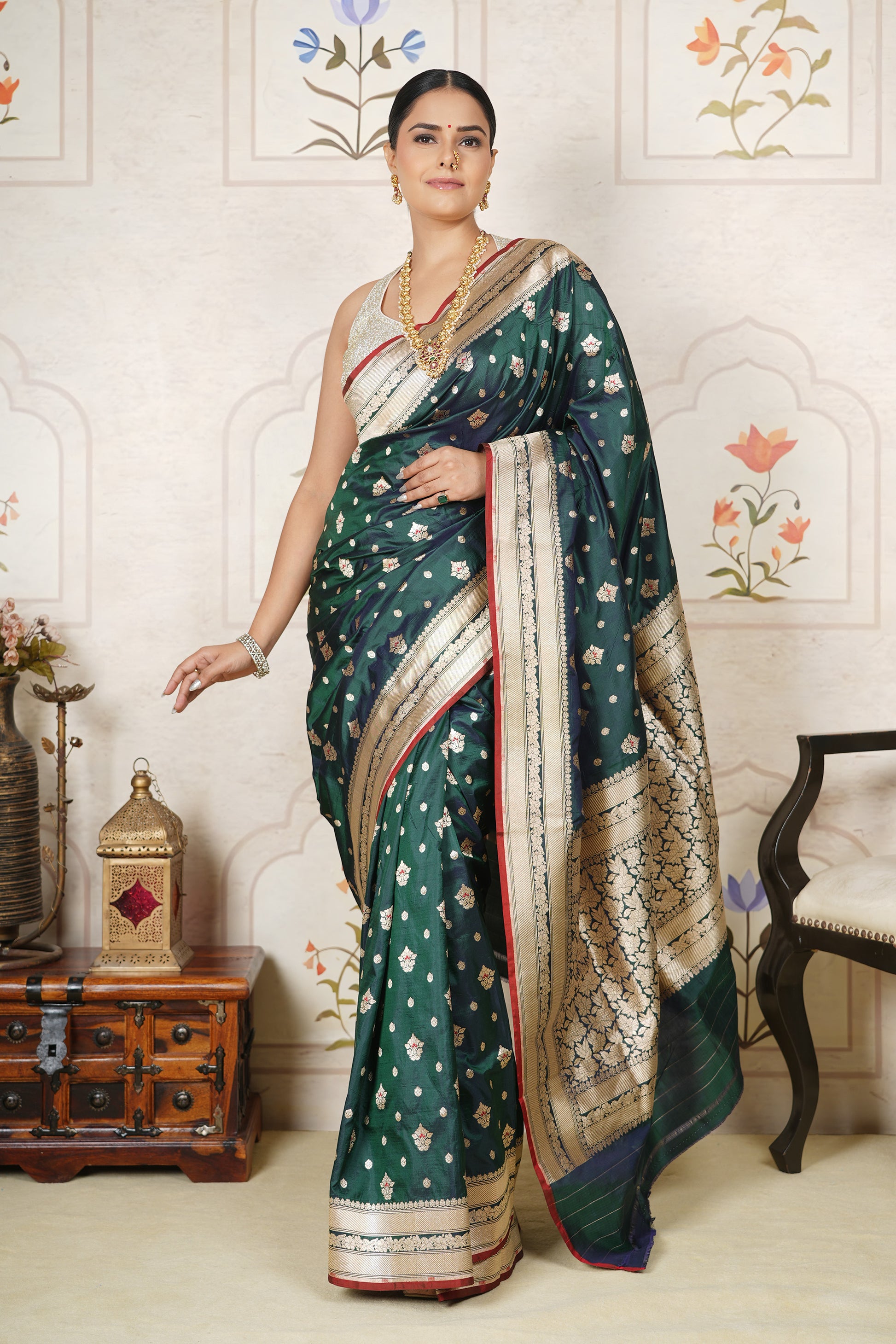 Grace any event with the regal elegance of this stunning Katan Silk Saree!